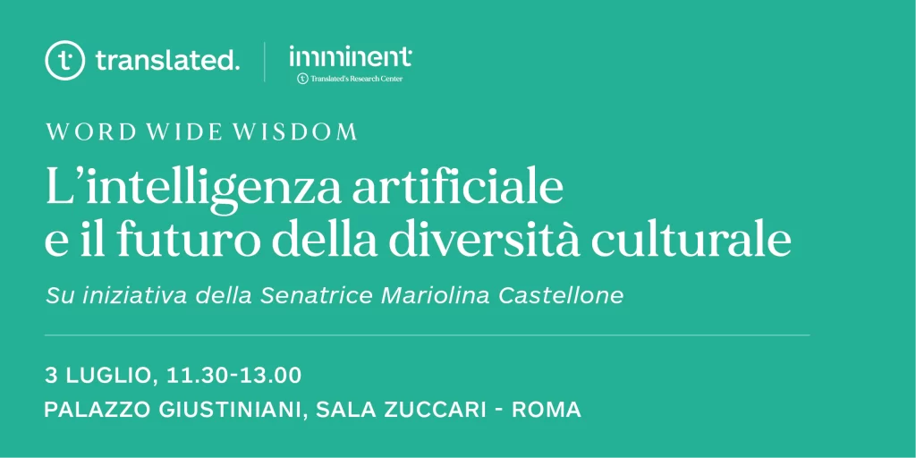 Cosa trovi in questa news Chi è Imminent Imminent è il Centro di ricerca di Translated che supporta le aziende nella localizzazione, finanzia la ricerca sui dati linguistici e premia le migliori iniziative che promuovono la tecnologia e la creatività per la comunicazione internazionale. In occasione della pubblicazione dell’ultimo Rapporto Annuale Imminent sui trend, i […]